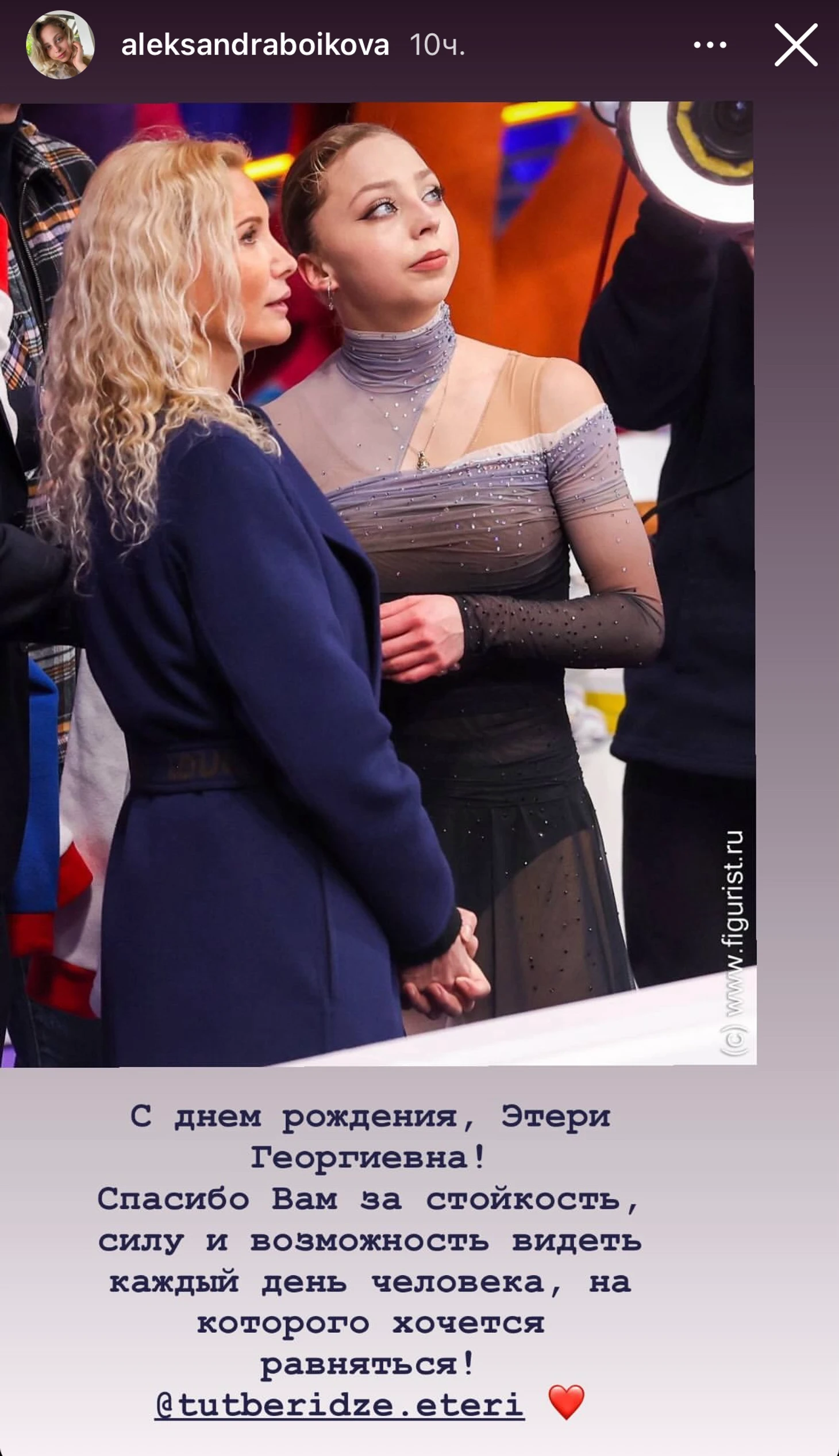 «С днем рождения, Этери Георгиевна! Спасибо Вам за стойкость, силу и возможность видеть каждый день человека, на которого хочется равняться!» – написала Бойкова.