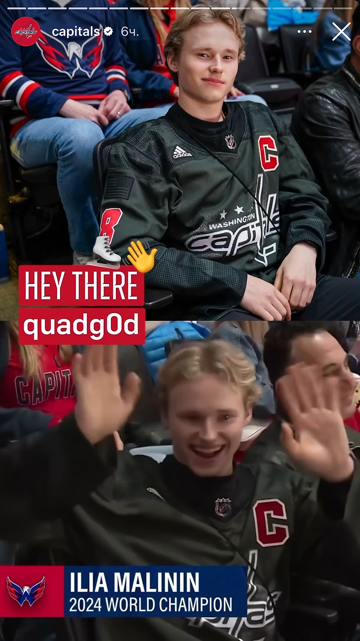 Илья Малинин посетил матч НХЛ «Вашингтон» – «Бостон» и сфотографировался с Овечкиным