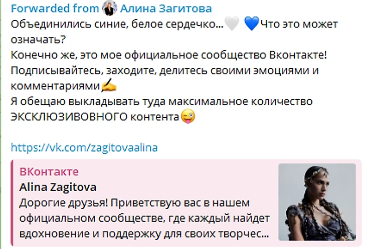 Загитова создала официальное сообщество «ВКонтакте»: «Обещаю выкладывать туда максимальное количество ЭКСКЛЮЗИВОВНОГО контента😜»