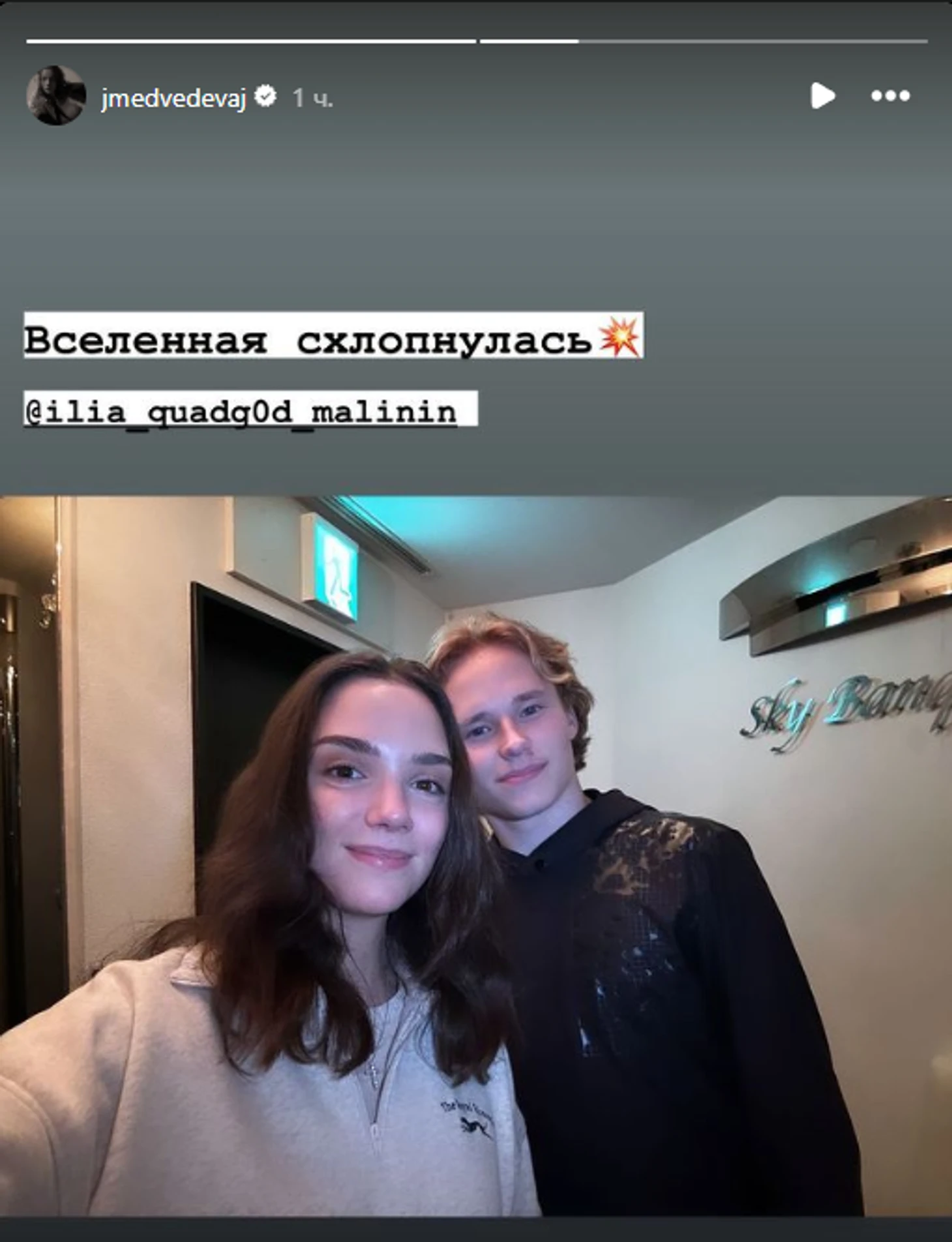 Евгения Медведева выложила фото с американским фигуристом Ильей Малининым.