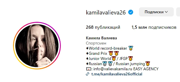 Валиева убрала упоминание о золоте чемпионата Европы из профиля в инстаграме и добавила строчку о мировом рекорде