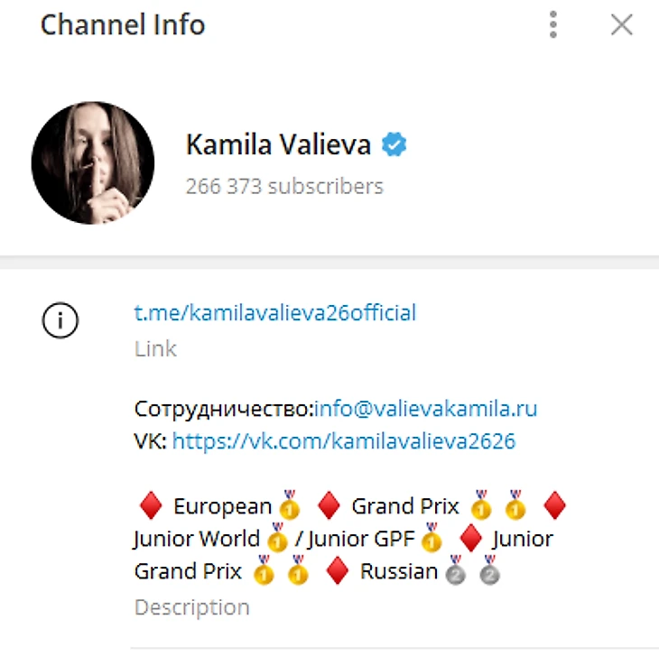 Камила Валиева убрала упоминание о золоте чемпионата Европы из профиля в соцсети.