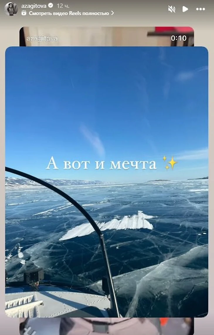 «А вот и мечта», – написала Загитова в сторис сегодня. Фигуристка показала фото и видео с Байкала.