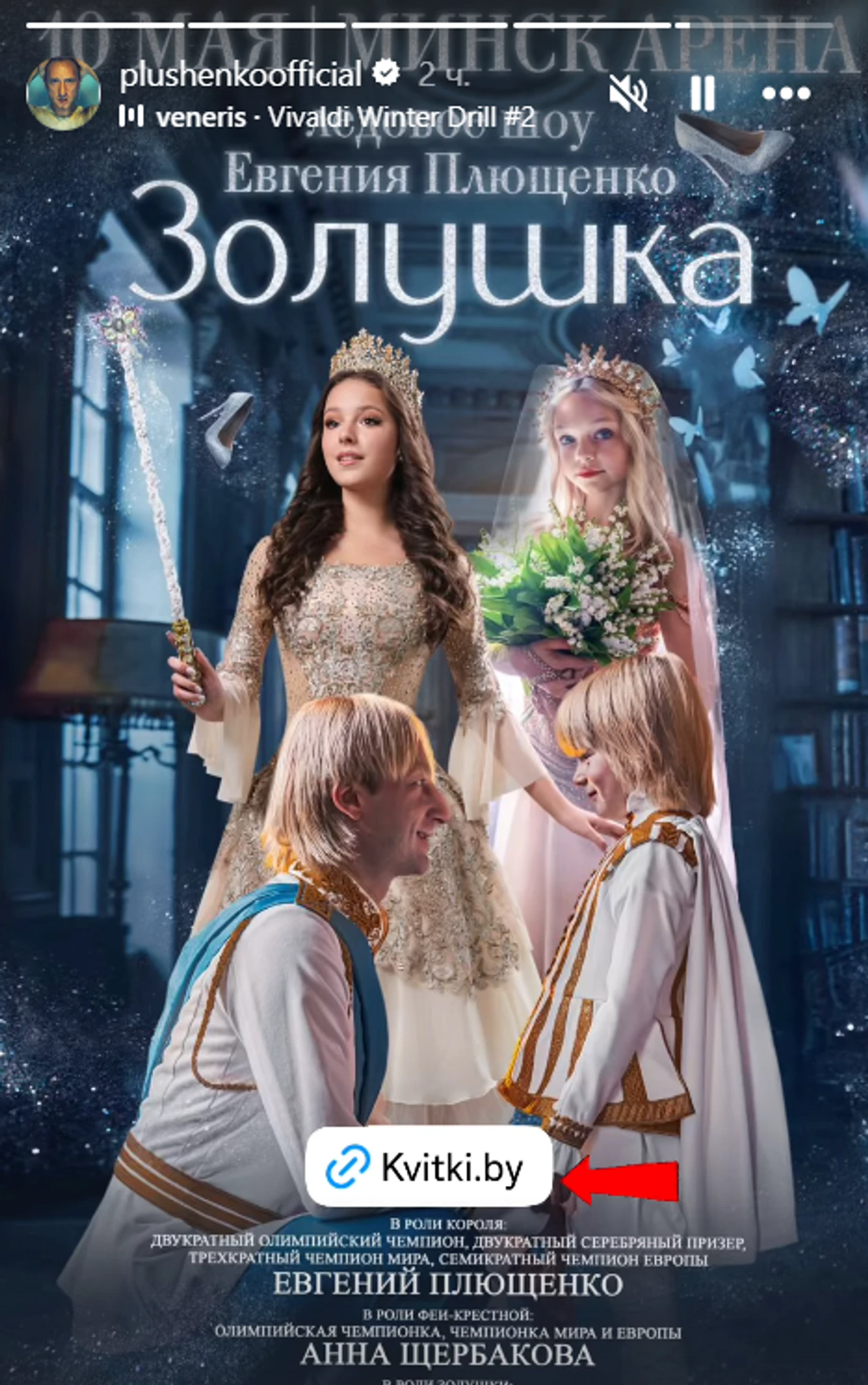 Евгений Плющенко показал афишу шоу «Золушка» с участием Анны Щербаковой.