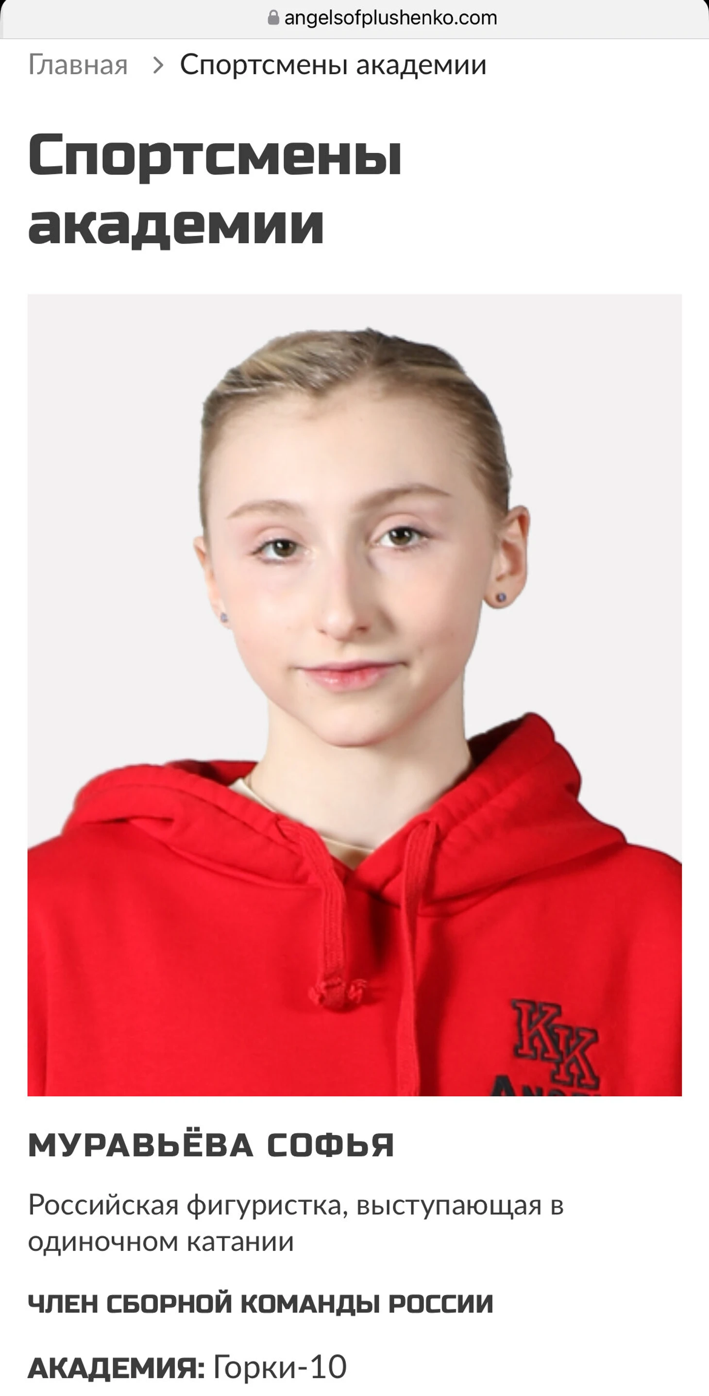 Муравьева до сих пор числится среди спортсменов «Ангелов Плющенко» на сайте академии