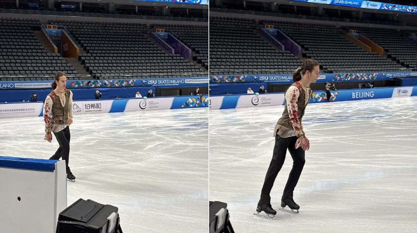 Петр Гуменник вышел на тренировку олимпийского отбора в костюме для короткой.