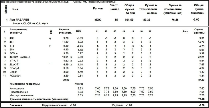 • Лазареву засчитали два повтора четверных в произвольной программе на Гран-при России в Красноярске. Позднее ошибку исправили