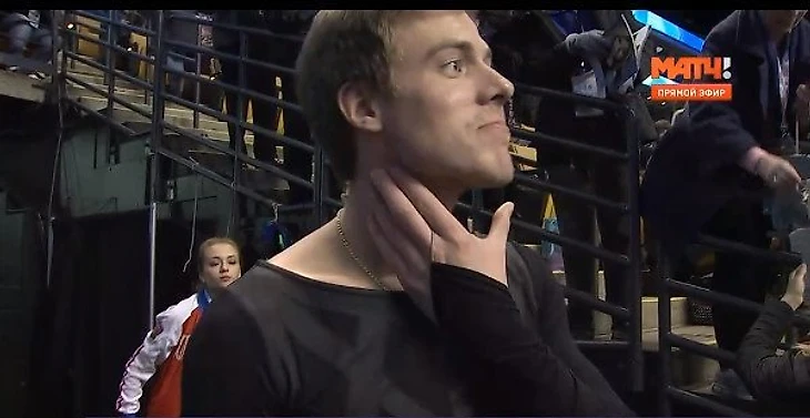 Не справившись с потяжелевшей на 8 кг (а по некоторым источникам на все 10 кг) Викторией Синициной, Никита Кацалапов уронил ее с поддержки прямо на хрупкую Майю Шибутани, Марину Олеговну с собачкой, а так же на, разучивавшего четверной сальхов под руководством Олега Эпштейна, Патрика Чана. Все участники происшествия громко выразили свое недовольство на отборном русском матерном. После чего пару попросили с вещами на выход. Скандалы, интриги, расследования. Не переключайте канал.