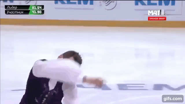 Миша Коляда находится где-то посередине между теми, кто порадовал, и теми, кто огорчил. С одной стороны, он страивает в короткой программе свой не самый плохой четверной, с другой – тут же ориентируется в ситуации и цепляет к лутцу в каскаде двойной, а не тройной тулуп, чтобы не допустить повтора элемента. В произвольной Миша радует тем, что неожиданно выполняет четверной лутц, который не выглядит таким безнадежным, как в свое время у Риппона, но в то же время огорчает итоговой оценкой за технику. И, конечно, по-прежнему вызывает откровенное недоумение его произвольная программа. Похоже, что элемент хореографии «сонный российский одиночник отдыхает после битвы с квадами» на отметке в 40 баллов технической сложности пора патентовать.