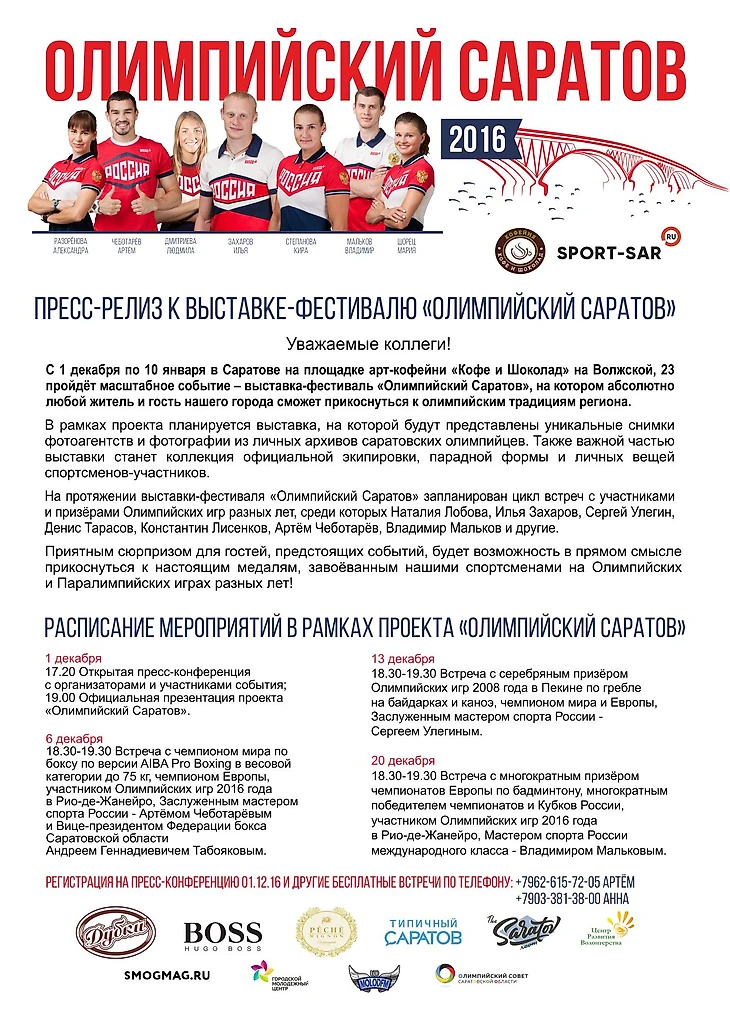 В четверг 1 декабря в саратовской арт-кофейне «Кофе и шоколад» на Волжской состоялось грандиозное открытие 45-дневного марафона выставки-фестиваля «Олимпийский Саратов», на которой абсолютно любой житель и гость нашего города может прикоснуться к олимпийским традициям региона.