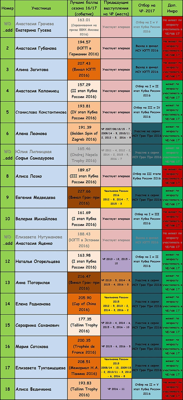 Чемпионат России по фигурному катанию 2017. Женщины. Представление