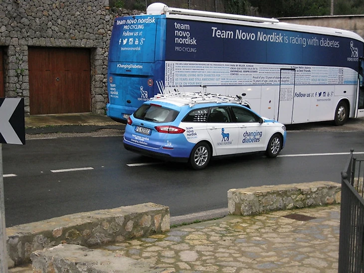 Рядом устраивается машина американской команды Novo Nordisk, в которой собраны только велогонщики, больные сахарным диабетом. У всей команды терапевтическое разрешение на использование инсулина – в велоспорте он считается запрещенным препаратом.