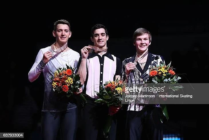 Насколько предсказуемо первое место у женщин, настолько же предсказуемо оно и у мужчин. Хавьер Фернандес может спокойно позволить себе несколько падений и смазанных выездов – и все равно укатать всех одной только базой, тем более безошибочных прокатов не продемонстрировал никто из претендентов на подиум. Хотя Хави и пообещал, что лучший его прокат (традиционно) состоится на ЧМ – есть у меня ощущение, что третью золотую медаль мирового первенства он в свою копилку не положит, тем более, что его самочувствие явно подкосило неприятное падение в произвольной программе.