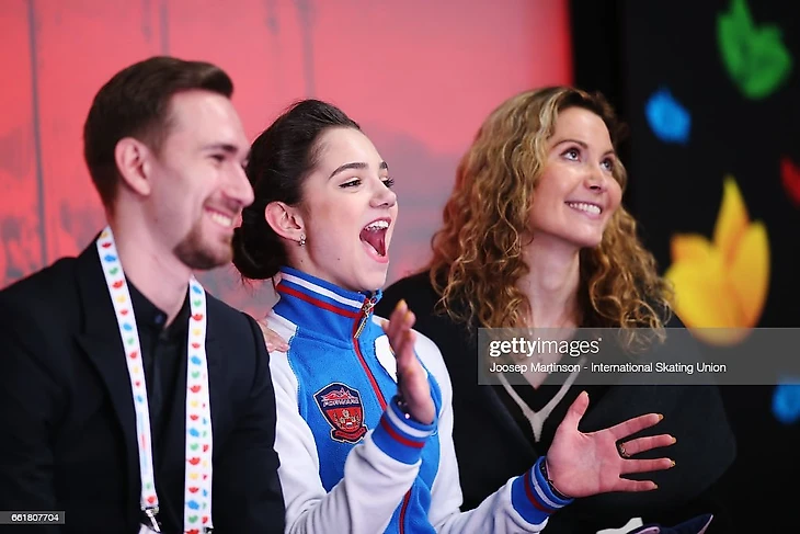 Иногда рождаются Жени, одаренные природой потрясающей психологической устойчивостью. Им нипочем ревущие трибуны, враждебные залы, загорающиеся на большом табло оценки предыдущего спортсмена и форс-мажорные обстоятельства. Когда Аня лежала на льду и плакала после своего проката, Жене Медведевой нужно было выходить туда. Женя раскатывалась, а в нескольких метрах от нее хоронила шансы на медаль мирового первенства, идущую в руки, коллега по сборной и клубу. Не знаю, показалось ли мне это от повышенного градуса драматичности происходящего, или так и было, но прокат Жени смотрелся самым сосредоточенным за весь сезон. Понятно, что ни о каких игривых 3-3-3 и лишних каскадах и речи не шло.
