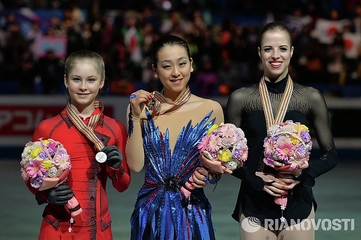 сезон 2013/2014 - золото Радионовой, серебро Саханович, бронза Медведевой