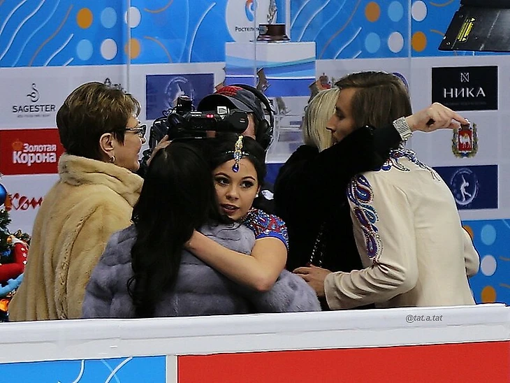 На лед их провожали Елена Кустарова и Светлана Алексеева, с напутствиями, улыбками и поцелуями. А позже к ним присоединился Игорь Шпильбанд. Все трое неотрывно наблюдали за происходящим.