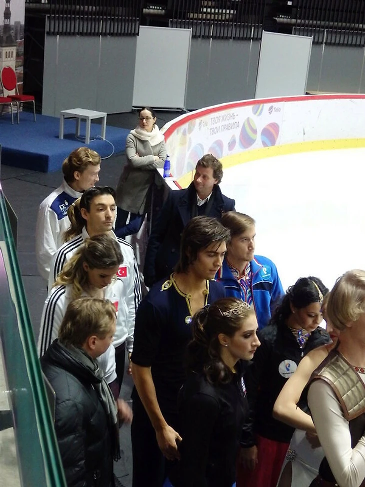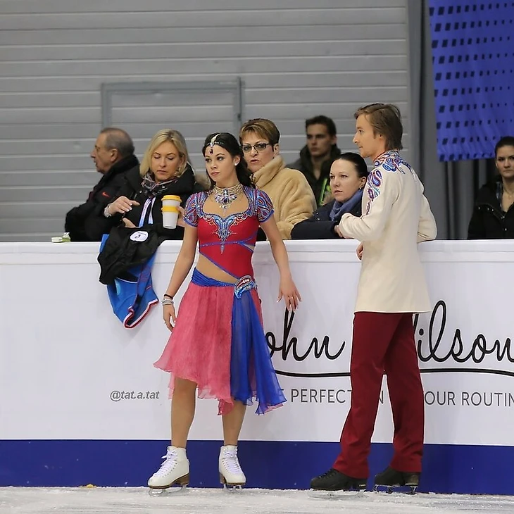 На турнире Таллинн Трофи в ноябре 2016 года подобрался интересный состав участников. И его хедлайнерами в танцевальной части турнира были, несомненно, Елена Ильиных и Руслан Жиганшин. До последнего ходили слухи, что пара на турнир не приедет, но ребята добрались до Таллинна . И не зря. Прекрасно откатав свои программы, получили свой сизон бест, которого, я надеюсь, хватит на 2 этапа Гран-при в следующем сезоне. Так как ребята большую часть сезона тренировались в Америке у Игоря Шпильбанда, а на этом турнире было большое представительство его танцевальных пар, то я была уверена, что Игорь будет их выводить на прокат наравне с Алексеевой и Кустаровой. Каково же было мое удивление, когда я увидела, что группа тренеров Алексеевой-Кустаровой (а с ними была еще Ольга Рябинина и еще какой-то мужчина) вместе с ребятами никакого контакта ни с Игорем, ни со спортсменами его группы не имела. Это не выглядело какой-то демонстративностью или обидами, просто они были очень самодостаточны. И, как мне показалось, Игорю хотелось все-таки контакта с ними.