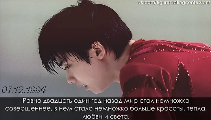 "Был ли в мире фигурист, настолько обожаемый, настолько фанатично любимый, и настолько прекрасный, как Юзу? Его магия - это не только огромный талант и мастерство катания, но и какое-то спокойное, глубинное сияние, исходящее от него, оно мягко окутывает и вызывает безграничное доверие - он именно тот, кого мы искали. Человек с большим сердцем, и он бескорыстно подарит каждому из нас лучшее, что в нем есть. В его словах - мудрость, в катании - красота, а в нем самом - сила. Он моя радость последних лет и источник вдохновения. И, видя его прокаты, так по-глупому хочется дать ему клятву... Я ни за что не сдамся, буду молиться и болеть, и вера моя безгранична."