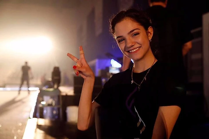 Евгения Медведева и Марин Хонда на открытии выполнили вращение в заклоне.