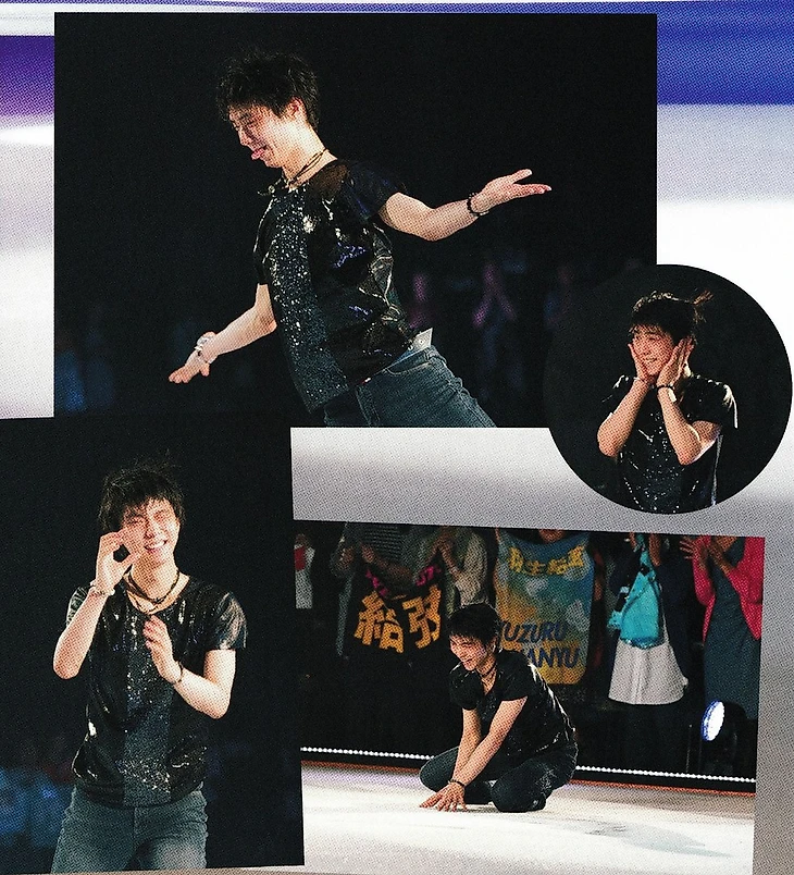 Изобразил позу из Sex Bomb Плющенко, показывая мускулы. Диктор объявил его, как "Качок Юзуру Ханю", после чего Юзуру позировал и целовал пару секунд свои мускулы.