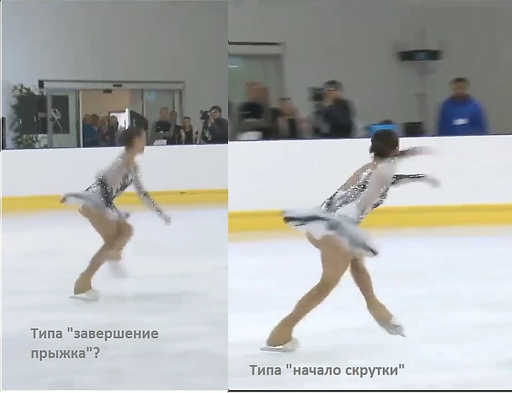 Итак, один из "аргументов", что я, видите ли, неверно определяю начало прыжка (вспомним, его даже необязательно определять). По моей версии (кадр 4) каскадный риттбергер в КП Загитова начала скручивать здесь (вернее, это последний кадр перед тем, как она начала преротейшн):