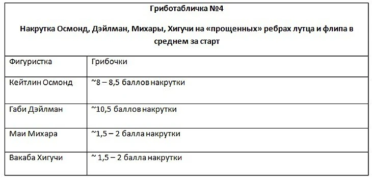 Выяснилось, что есть фигуристки еще более "наглые", чем Осмонд. Это, например, её соотечественница Габи Дэйлман. Она заявляет свой флутц 3-жды, т.е. максимально возможное число раз. Последней фигуристкой до Габи с такой "наглостью" на моей памяти являлась Липницкая в олимпийский сезон. Правда, напомним, что тогда правила в отношении флутцей были все же помягче.