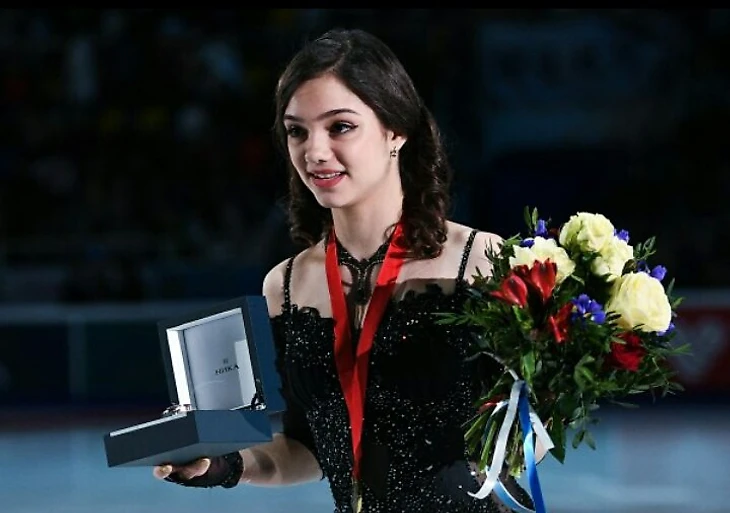 Евгения Медведева — российская фигуристка, выступающая в женском одиночном катании. Двукратная чемпионка мира 2016 и 2017 годов, двукратная чемпионка Европы 2016 и 2017 годов, двукратная победительница финалов Гран-при 2015 и 2016 годов, серебряный призёр Командного кубка мира 2017 года. Двукратная чемпионка России 2016 и 2017 годов. Заслуженный мастер спорта России[4], обладательница мировых рекордов в короткой и произвольной программах, а также по сумме баллов.
