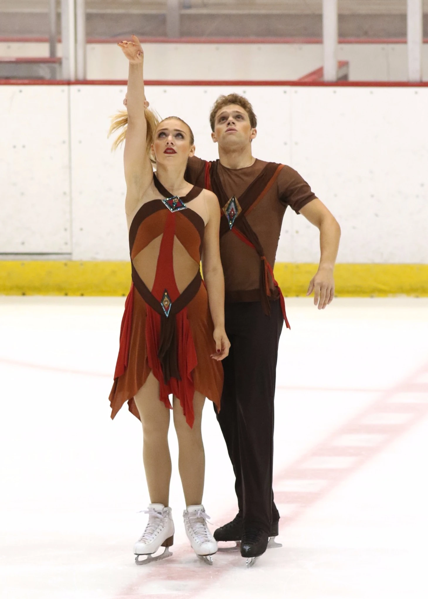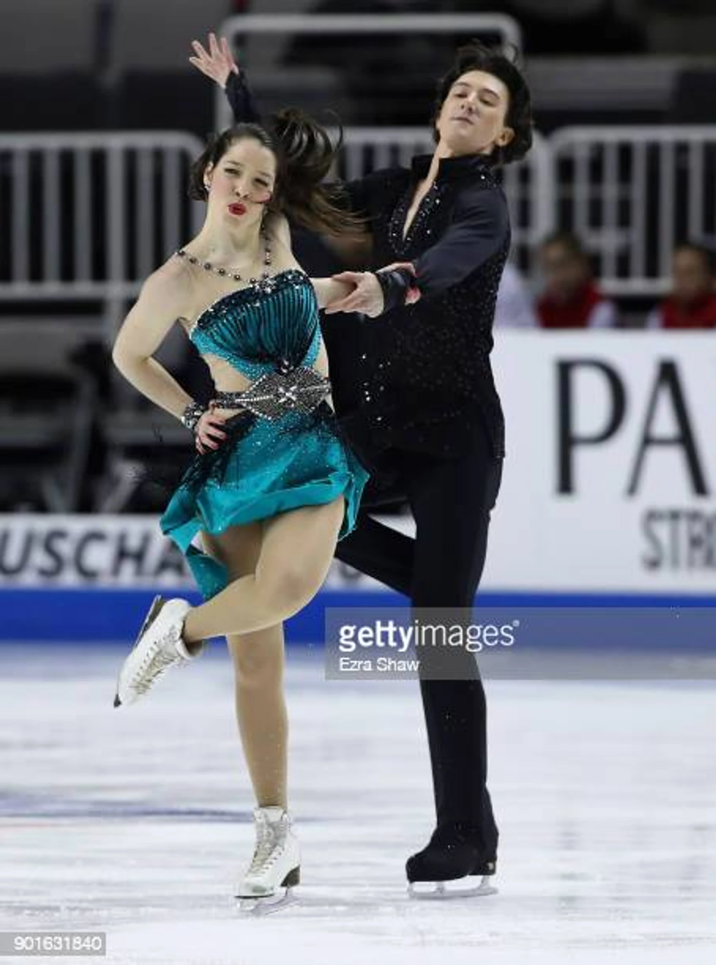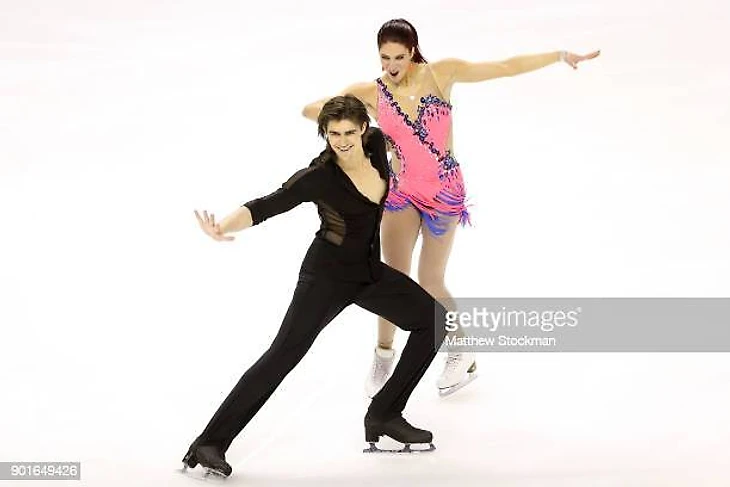 Рэчел и Майкл Парсонс пятые. Они, как и Макнамара/Карпентер, тренируются у Алексея Килиакова.Короткий танец хорош, интересней, чем у одногруппников, и исполняли они его лучше. Но на льду Рэчел… слишком много. Причем в прямом смысле, физически. Они практически одного роста, но партнерша в платье с открытыми плечами "букетом" кажется шире вдвое, и мелкий Майкл рядом с ней теряется.