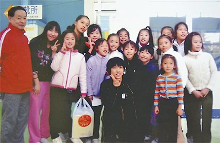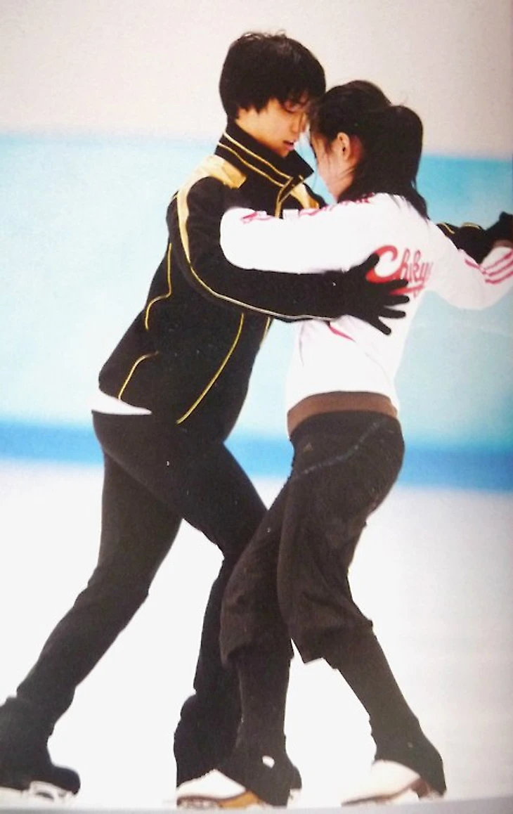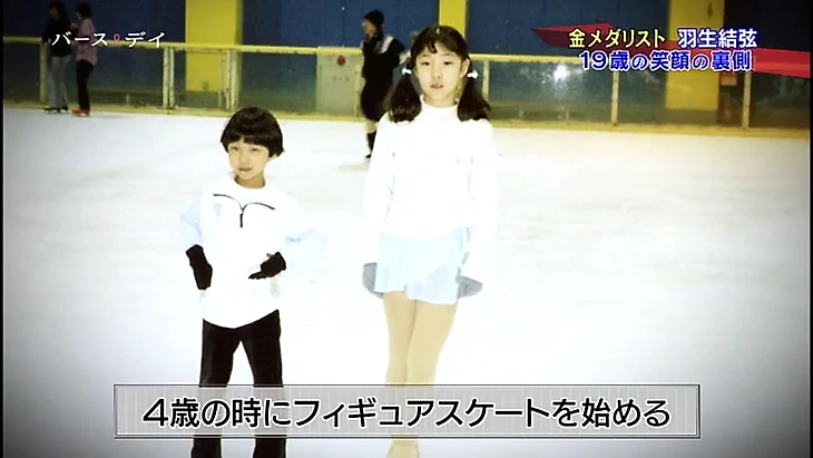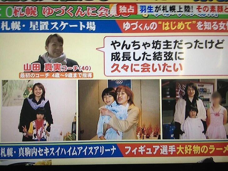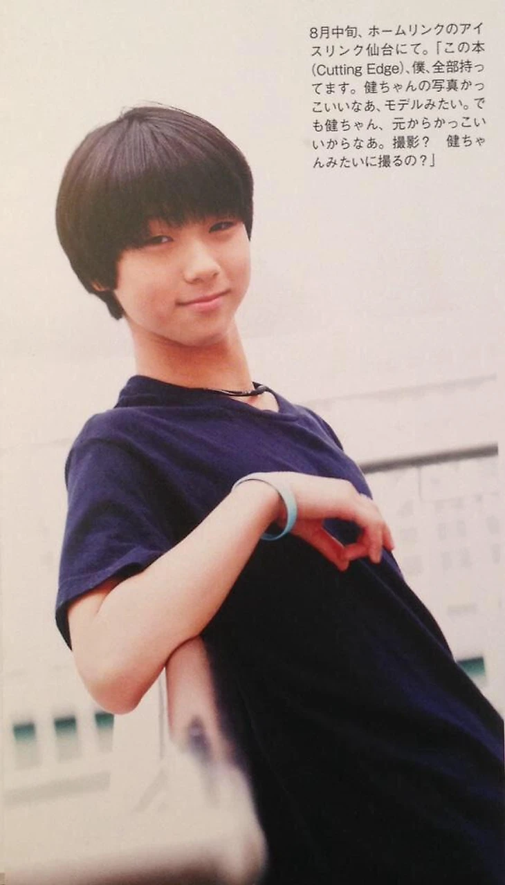 Его первый тренер Ямада-сэнсей заметила, как он бегал вокруг катка, в то время как его сестра каталась на коньках, и сказала ему: "Если ты такой шумный, почему бы тебе не попробовать [покататься на коньках]?"
