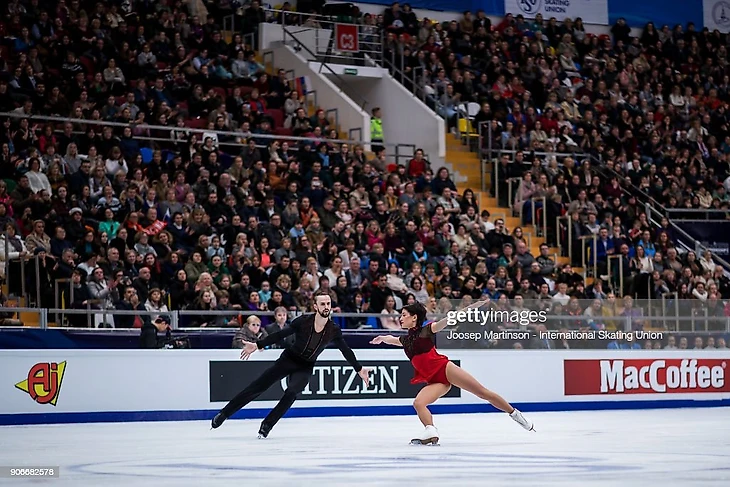 Французы сегодня сильно уступали самим себе и образца дня вчерашнего, и начала сезона. Мелкая грязь вылезала почти на каждом элементе, но почти нормальный четверной выброс и отличный тройной в совокупности с баллами во вчерашней короткой программе в общем-то не давали повода сомневаться в том, что в тройке они будут. Точно не первыми, с большой долей вероятности не вторыми, но третьими однозначно. Тем более удивительным было увидеть их четвертыми со смехотворным отрывом в одну сотую от Забияко-Энберта. Уже в метро открыла протоколы: и даже по ним с первого взгляда не поймешь, чем же проиграли Ванесса с Морганом. Компоненты на 2.5 балла выше Натальи и Александра; четверной выброс без снижения ГОЭ. В общем-то отставание набралось по крохам: на двух уровнях разницы между подкрутками; на надбавках за поддержки; на копейках во вращении. Много подарили Джеймс-Сипре соперникам, но заслужили ли бы такой щедрый подарок собственным прокатом такого уровня в любом другом месте проведения соревнований Забияко-Энберт?