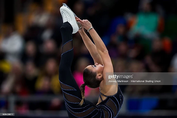 Первое конкурентоспособное выступление в слабых разминках, хотя и не безошибочное, показала Луна Хендрикс. Интересная девочка со своим лицом и неплохой для среднеевропейского уровня техникой. Вращения и вовсе топовые.