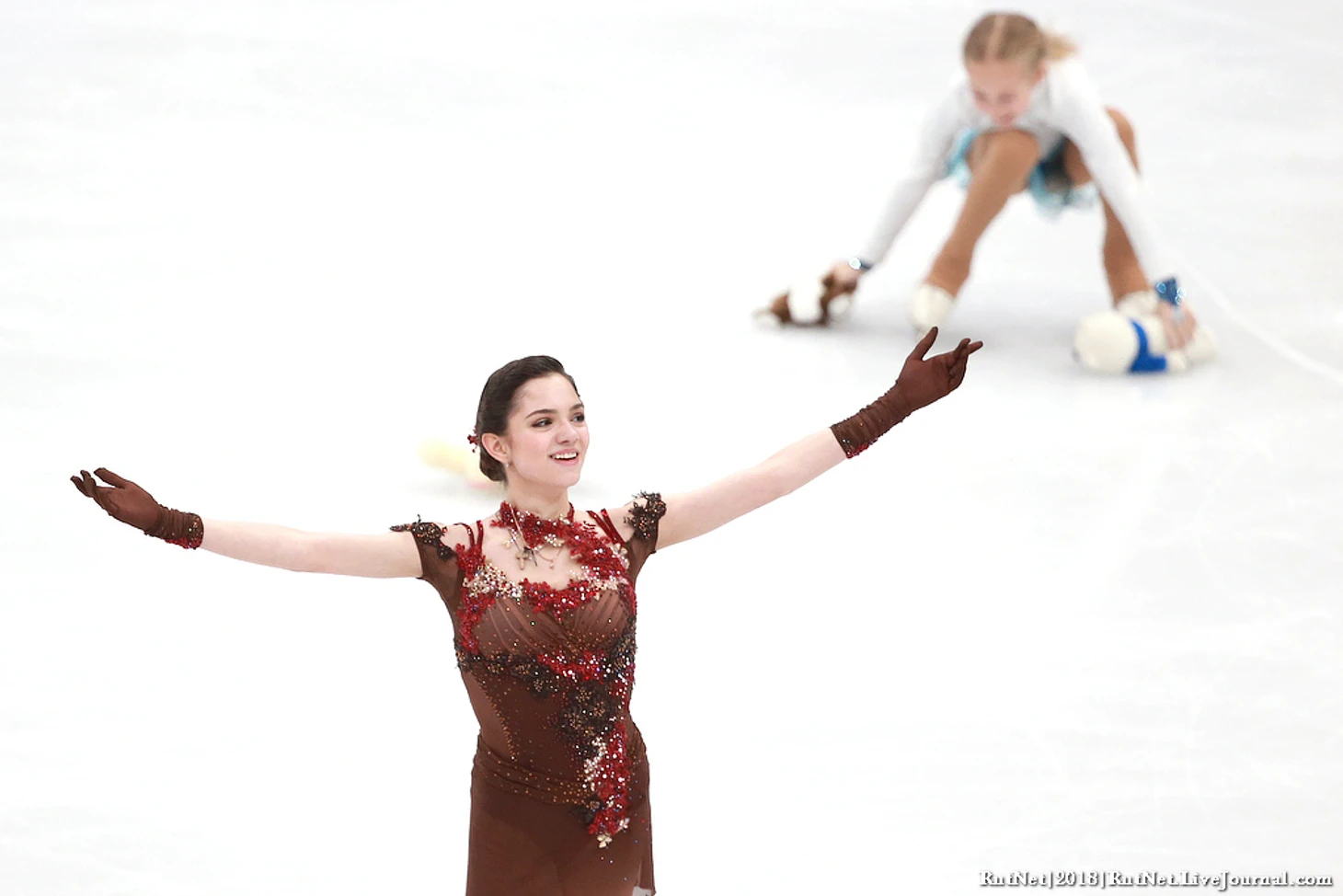 20 января в Москве на льду арены «Мегаспорт» россиянка Алина Загитова выиграла чемпионат Европы по фигурному катанию. Её соотечественница Евгения Медведева заняла второе место, а итальянка Каролина Костнер завоевала бронзовую медаль.2. 3. 4. 5. 6. 7. 8. 9. 10. 11. 12. 13. 14. 15. 16. 17. 18. 19. 20. 21. 22. 23. 24. 25. 26. 27. 28. 29. 30. 31. 32. 33. 34. 35. 36. 37. 38. 39. 40. 41.