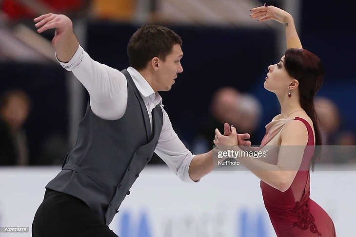 Степанова-Букин катали осторожнее, чем накануне, и танец будто бы разделился на части: удачная первая часть (как было и в «Либертанго»), провисающая середина и бодрая концовка. На разминке чуть не произошел, к слову, неприятный инцидент, когда ребята делали свою поддержку по прямой, а спиной к ним ехал Лука. Еще чуть-чуть – и могло бы быть столкновение.