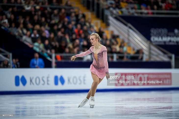 Маша начинала прокат нервно, поэтому, наверное, ошибка на лутце не стала чем-то неожиданным. Что, впрочем, не должно было лишать ее бронзы, ибо прокат Каролины был на прокат призера Европейского чемпионата был похож еще меньше, и даже отрыв после короткой, которую она откатала действительно хорошо, никак не мог объяснить компоненты 9,25-9,54, которые ей поставили. Если говорить о костюме, то вживую он смотрится не менее странно, чем на записи: перебор там и с кислотным цветом, и с количеством стразов. Думаю, к Олимпиаде Каролина вернет платье. А возвращать ей надо, кроме этого, и Мишина: техническая оценка получилась почти как у Эмми Пелтонен.