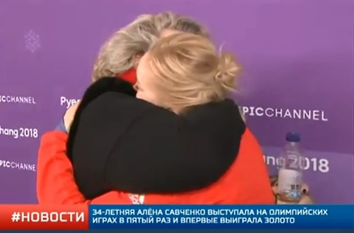 Татьяна Тарасова поздравляет Алёну Савченко с золотом