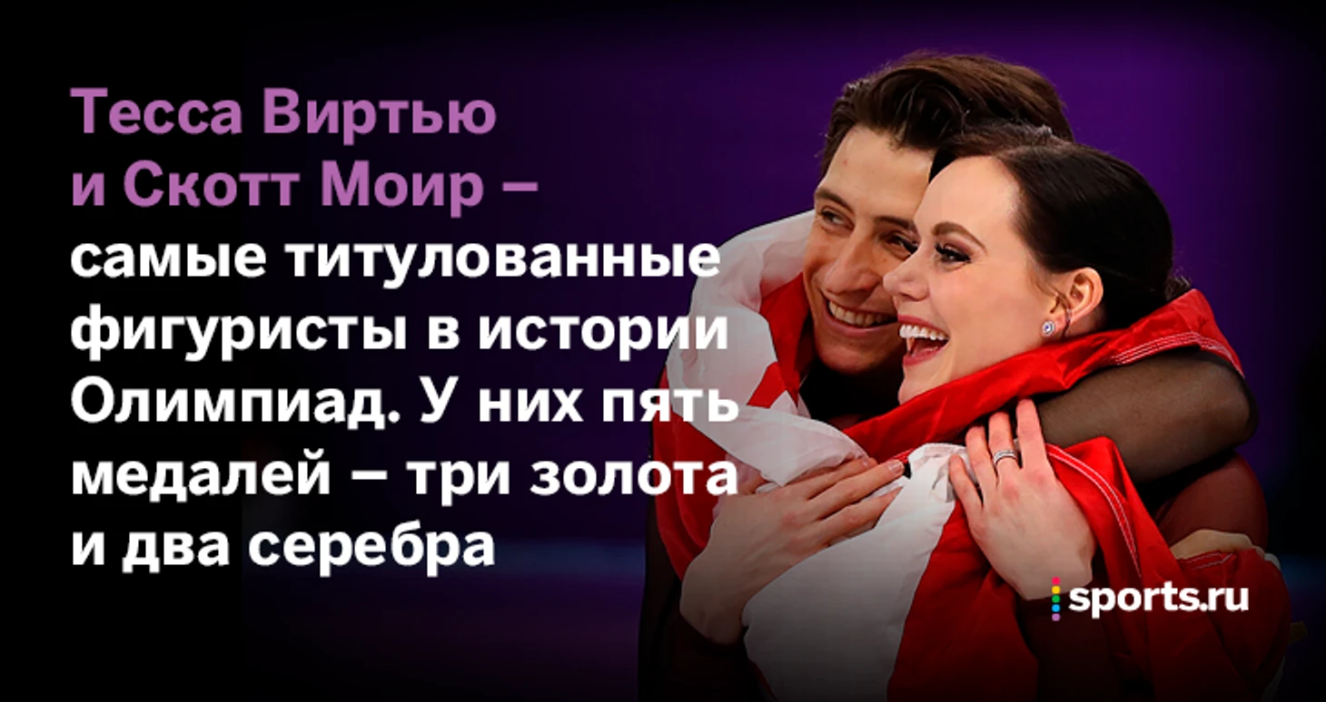 Сегодня Тесса Виртью и Скотт Моир выиграли вторую Олимпиаду в танцах на льду. Спустя 8 лет – в Сочи они были только вторыми. А если учитывать победу в командном турнире – здесь же, в Пхенчхане, – то канадский дуэт стал самым титулованным в истории Игр.