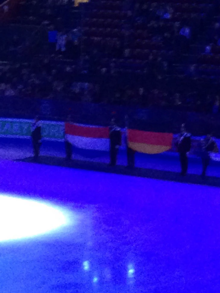 Сводить с ума соседей мы начали на прокате Астаховой/Рогонова. Соседями в первый день были пожилые немцы (как потом выяснилось, родственники Рубена Бломмерта). Кричали мы так активно и хлопали так громко, что даже уровень адреналина подскочил. После проката закричали: "Молодцы!" Опять же, закричали настолько громко, что ребята в итоге нас заметили и помахали персонально.