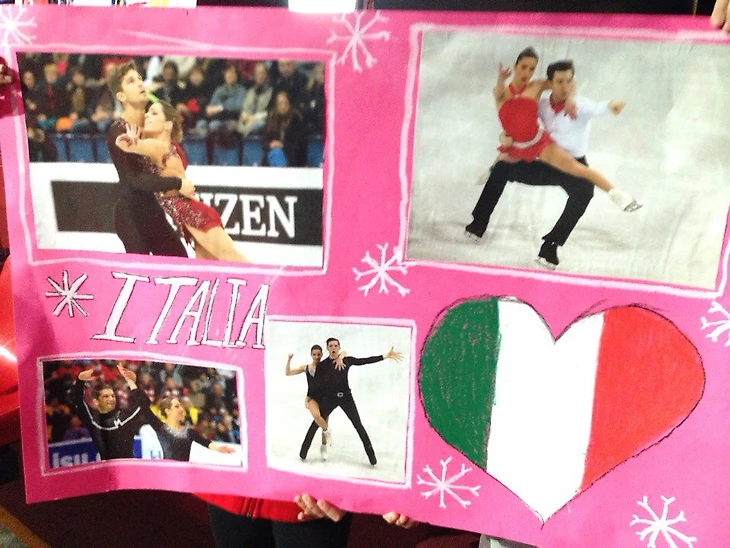 Сразу за ними на свою ПП полетел ураган по имени Валентина. К сожалению, и здесь её подвели нервы. Немного обидно, что домашний ЧМ вышел для пары не настолько удачным, насколько хотелось. Но итальянцы всё равно взорвались аплодисментами, уж очень любят они своих фигуристов. Они так же горячо и бурно поддержали Николь с Маттео. На стадионе было полно плакатов в поддержку этих двух пар, даже детишки бегали по залу с ватманом в руках, на который были приклеены фото, и судя по не самым аккуратным буквам, плакат точно сделали сами дети. Очень трогательная поддержка!