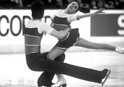 Эйслера я бы назвал домкратом на коньках. Здоровенный мужик легко поднимал эту Изабель и крутил в разных плоскостях. Вместе они катались второй год – до того у Эйслера много лет была другая партнерша, Катерина Матусек, с которой он выиграл бронзу на ЧМ-85. Потом несколько лет его вообще не было видно, и в 1988 г. Эйслер появился с Брассёр. Артистичности маловато, техника тоже средненькая. Поддержки очень хороши. Домкрат и есть домкрат.