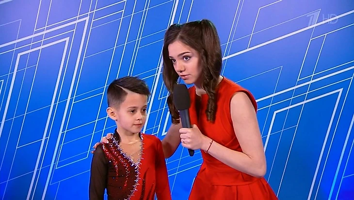 Она встречает откатавшихся детей за кулисами и берет у них флеш-интервью. Но не у всех – на экране Женя появляется редко, не больше 10 раз за первый выпуск.
