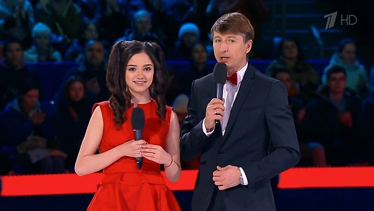 За кадром шоу комментируют Владимир Гомельский и Александр Гришин. Ведущие на льду – Алексей Ягудин и Евгения Медведева. Как раз одиночники.
