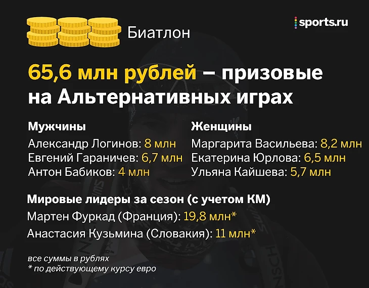 В биатлоне больше всех заработала Маргарита Васильева, в карьере которой нет ни одной гонки Кубка мира. Александр Логинов точно получит свои премиальные за две победы – всего в 2,5 раза меньше, чем Фуркад за весь сезон. Здесь компенсацию за пропуск Олимпиады получили все неприглашенные, кроме Шипулина и Виролайнен.