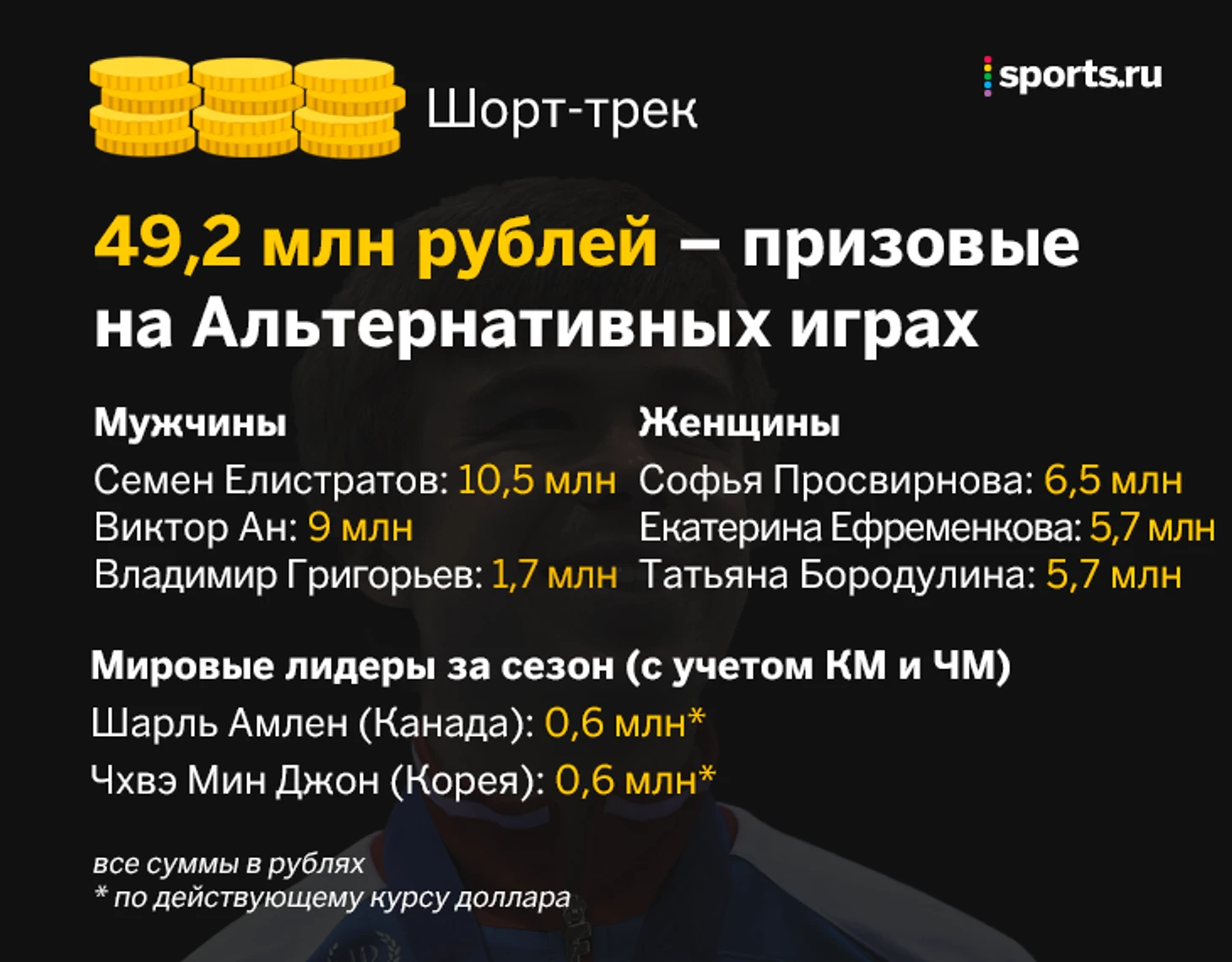 Виктор Ан получил достойные деньги за несправедливый пропуск Олимпиады, Татьяна Бородулина тоже, а Семен Елистратов сначала выиграл бронзу Пхенчхана, а потом сорвал банк в Санкт-Петербурге.