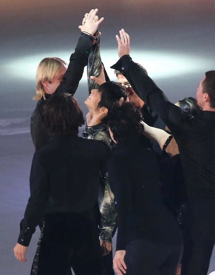 - Во вступлении все фигуристы выполняли различные начальные или конечные позы из программ Юзуру, включая финишную позу из Сеймея.