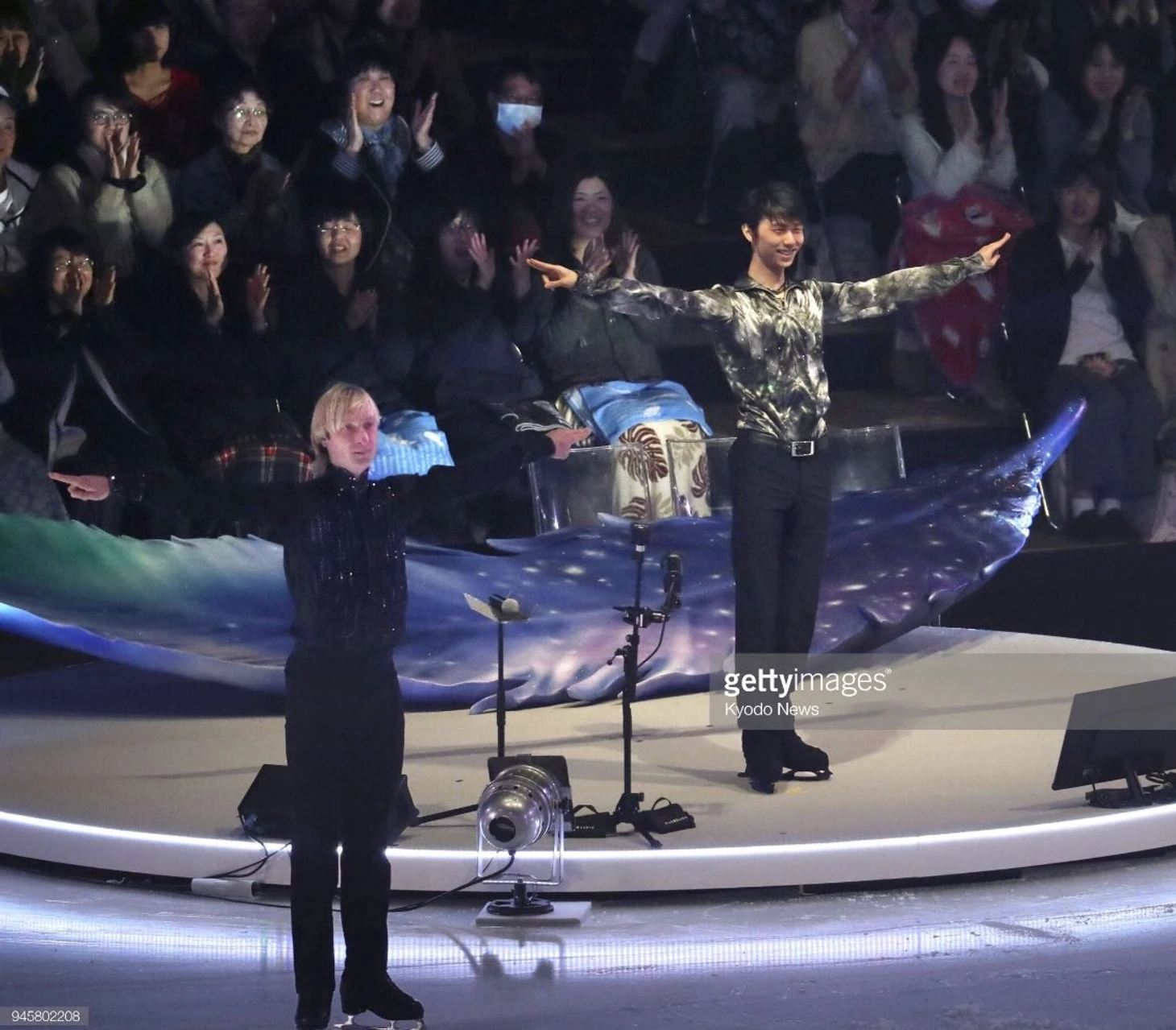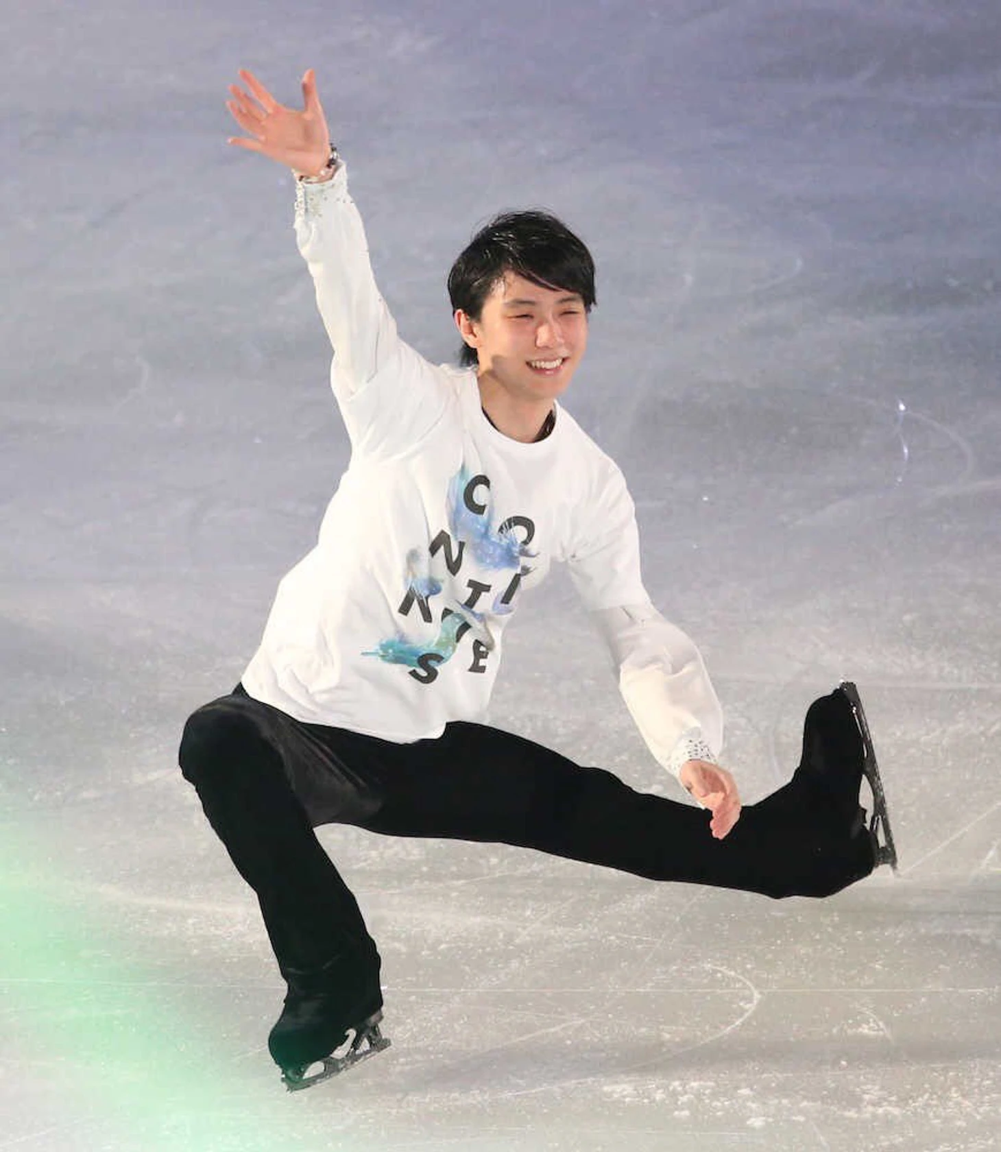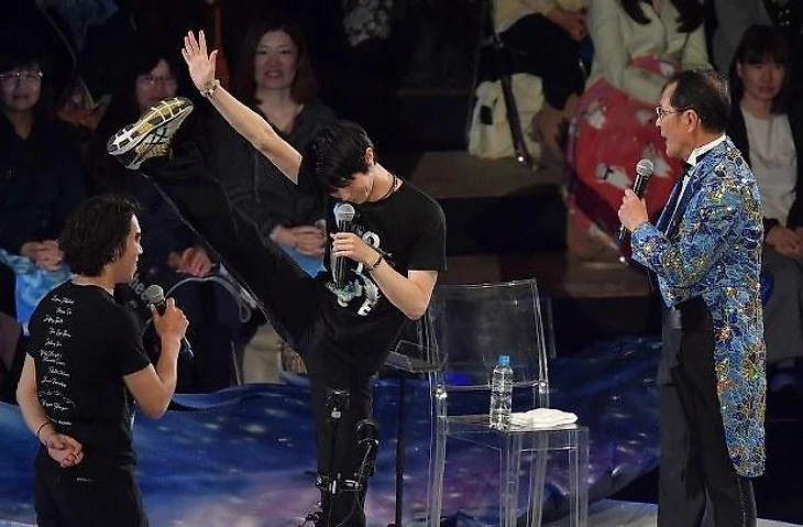 Первоначально Ханю не планировал кататься в первый день его трехдневного ледового шоу в Токио «Продолжаю с крыльями», но к нескрываемой радости толпы, заполнившей Musashino Forest Sports Plaza, он выступил с миксом из своих старых программ, правда без прыжков.