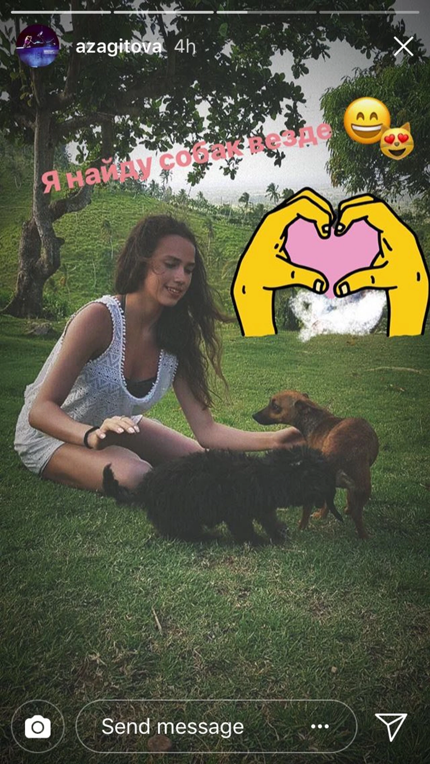 Алина Загитова в Доминикане: гуляет с собачками, летает на метле