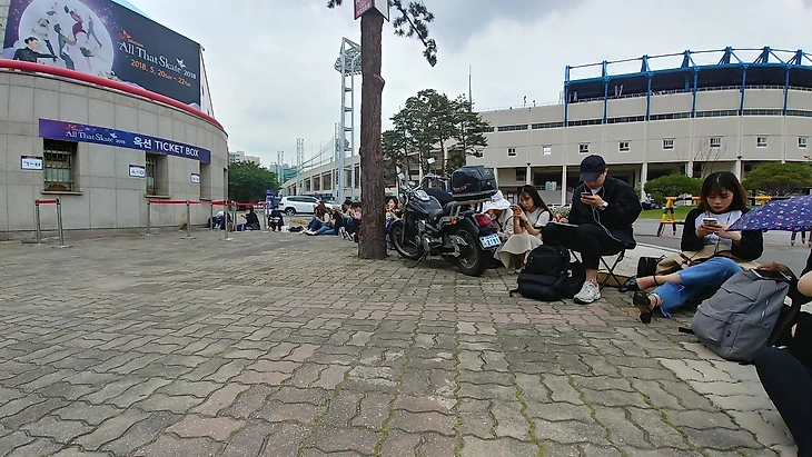 На следующий день был День Рождения Будды-редкий выходной в ЮК. К кассам я подошла в 11:30 и там меня встретила радостная очередь в человек 25-30 :). Обычное дело в таких ситуациях. Страшно подумать, во сколько пришла всю дорогу до 2 часов проспавшая девушка, сидевшая первой в очереди. Южно-корейцы и очереди-это кстати отдельная интересная тема для разговора. Вкратце - в очередь они выстраиваются очень быстро, стоят-сидят тихо-мирно-терпеливо, никому вперед пролезть не дадут, но и сами будут стоять в очереди до последнего. Ну и я присела на заблаговременно захваченную с собой сидушечку и углубилась в книжку. Время пролетело быстро, за мной пристроилось еще человек 30.