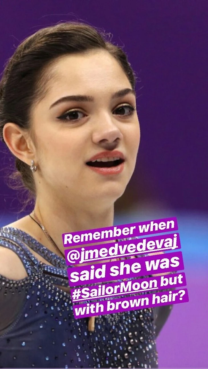 Идея Олимпийского канала с хештегом строилась на том, что Женя как-то назвала себя Сейлор Мун, только с черными волосами.