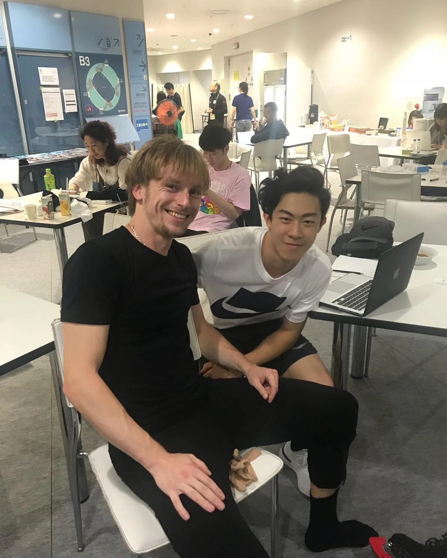 Второе отделение открывала Jump Battle. На этот раз воевали между собой Шома и Алиев, оба в костюмах Супер Марио. Шома сделал 2А-3Т падение, 2А-3Т степаут. Алиев- 3А падение, 4Т степаут. Выграл Шома. Тоже мне сюрприз, но на то оно и шоу. Маи Михара с новой КП, 3Л-3Т, 2А, 2Ф, аккуратненько и скучненько. Воронов новую ПП представил, с 3Т-3Т, 2Р, 2А, 3А- кроссавчек, 2Л, 3Р, 3Т. Ему японская публика скидку делает, как ветерану и русскому блондину, крики "Браво!" с восторженными воплями. Каори- новая КП, 3Ф-3Т падение, 2А, 3Р. Мура- с Фантомом, 3Л, 3Р, 1А, 3А степаут, 3Л-3Т, он красивый фигурист по-своему. Сатоко- с новой КП и в платье шёлковых сумерек, 3Л-2Т, 2А. Пападакисы- старый КТ под латину, что-то совсем без энергии, как непроспавшись. Чен представил новую ПП, 4Т степаут, 3Р, 3Ф, 3А с кораблика, 4Т, 3Л, 3С степаут, музыка- как мистика. И тут на Чене я заметила, что новый ИСУ-шный формат ПП действительно кажется короче. Это когда хочется продолжения банкета, а тебе включают свет. Алина- с новой КП, 3Л тройки, 2А, 3Ф тано. Как Фантом там обставлен, так прога больше напоминает не урода в маске, а Рождественскую Дисней-принцессу из волшебной сказки. Шома как бы представил как бы новую ПП под "Лунную". Никакой проги там нет вообще. Они похоже проверяют как музыка сядет, ничего ещё даже на коленке не накатали. Он просто едет, кое-где повторяет куски из прошлых прог, сделал 3Ф, 3А, 3Р, 3С, 4Т, 3А падение. В итоге план такой, что когда прога будет готова, то будет эффект Турандот- под красивую музыку новый драматик. Кстати когда Шома катал, я позади услышала трескатню, оказалoсь Ванесса с Морганом чего-то на своём языке щебетали, двигаясь в другую сторону катка. А за ними шёл Бо, спокойно, он очень высокий в реале, особенно в коньках. В финале Шому в "пару" с Алиной поставили. У меня опять диссонансик случился, т.к. прямо в наш проход пришёл Чен, и вот я не знаю куда смотреть, то ли на Алину с Шомой, то ли как Чен с ноги на ногу переминается. В трио Чен-Шома-Бо все прыгали 3А друг за другом, Шома упал плашмя, а Бо уже был в воздухе, но Шома быстро ящерицой увернулся, так что ничего страшного не произошло. Догадайтесь кто катил сразу за Алиной в финальном параде. Правильно- Нафаня, за ним Шома. Бо был больше сам по себе, он самодостаточный.