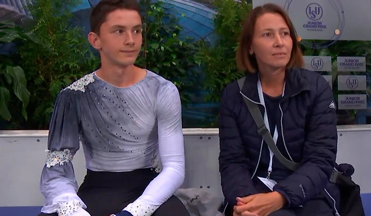 Глядите, Михайло с Украины в трениках цвета Христа Транькова и под «О, фортуну». Это не треники — это Траники! Замороженного парня даже такой теплый цвет не согрел. Вероятно, он боится этой фортуны, еле живой катит. Говорят, у Миши была травма, по этой причине он сильно падал даже на вращении. Больно-прибольно падал. Больно-прибольно смотреть на его программу. Парень старался, но вышиванка перемоги не принесла (предпоследний пришёл). Подлечись, милый.